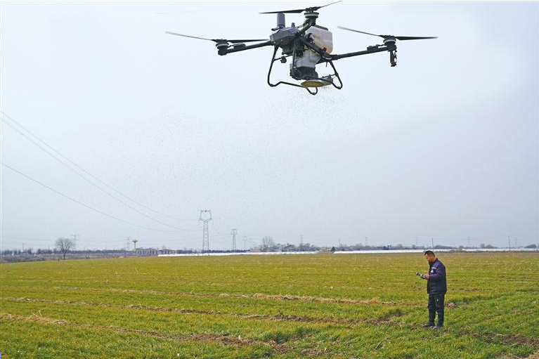 3月4日,正在西安市临潼区铠东种植专业合做社的田里,尚乐乐操做植保无人机进行播撒功课。通信员 王三合摄3月4日,西安市临潼区铠东种植专业合做社的地步里,一架拆载肥料的植保无人机正正在进行播撒功课。无人机操做手尚乐乐手持遥控器,操控无人机沿着提前规划好的线进行喷肥功课。整个过程快速、高效。“除了功课效率高,植保无人机还能完成线规划、一键功课、从动返航等指令。”尚乐乐引见,比拟保守人工功课体例,无人机有播撒平均、施肥量精准、不受做物长势和地形等劣势。合做社位于临潼区相桥街道,流转地盘1000余亩,通过选用优秀品种、配方施肥、合理灌溉,使粮食出产向绿色高产高效迈进。合做社理事长尚小林说:“春节前,我们就起头预备肥料,趁着这几天气候好,赶紧把肥施上,争取本年有个好收获。以前一小我一天最多施肥10亩,本年买了植保无人机,一小时就能施肥100多亩,不只提高了工做效率,还降低了种植成本。”“为让麦苗‘吃饱吃好’,我们正在给麦田灌溉的同时,还通过水肥一体化滴灌系统,把肥料同步施到田里。”尚小林说,水肥一体化使小麦种植田间办理变得更轻松。近年来,临潼区鼎力推广粮油做物绿色高产高效手艺集成使用,提高农业出产现代化程度,积极推进农人稳产增收。目前,临潼区54万亩小麦连续进入返青期,本地农业手艺人员按照“控旺促弱,稳壮抗逆”的要求,深切下层分类指点农人做好小麦浇水、施肥、除草等田间办理工做,为夏粮丰收奠基根本。(通信员 王三合)