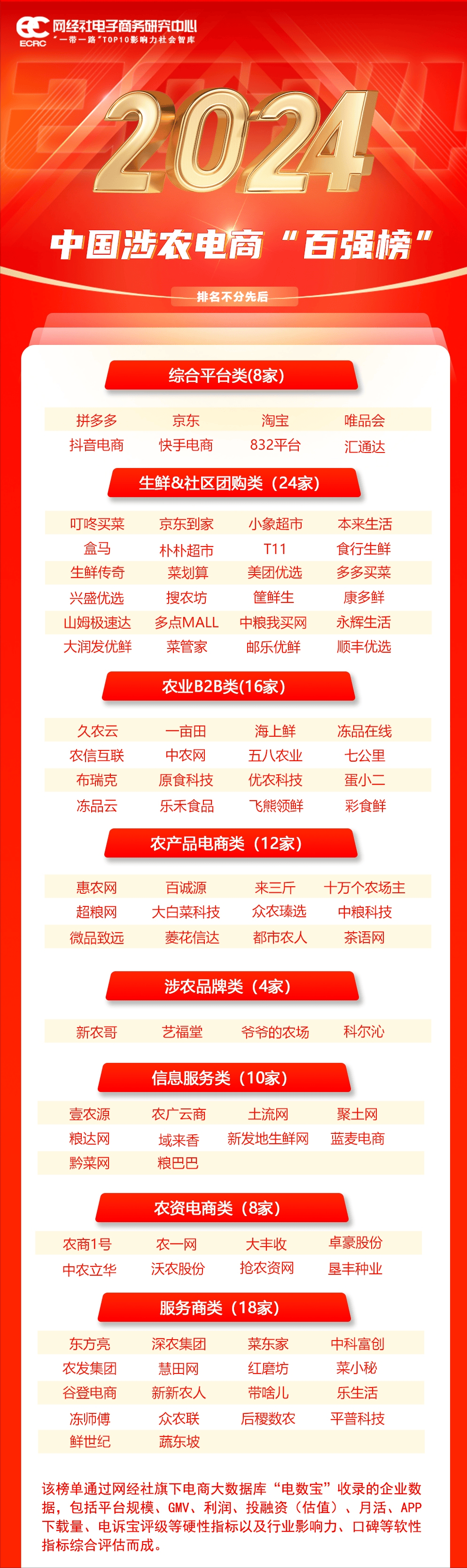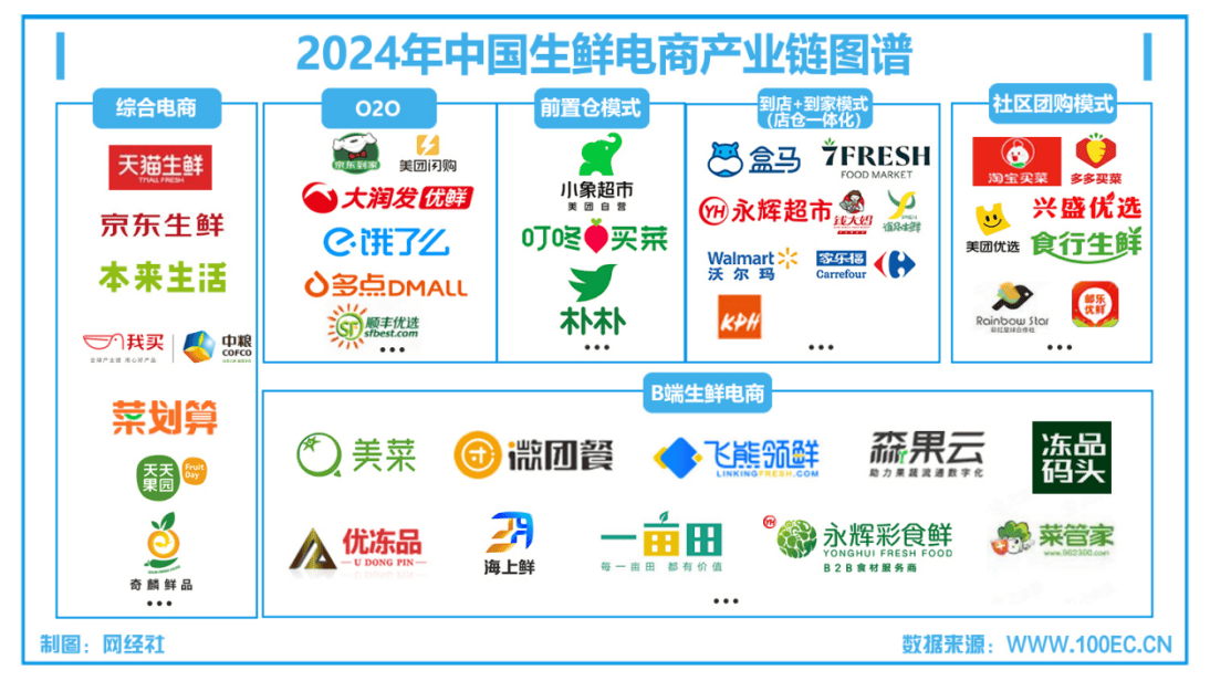 1。 分析平台类(8家):拼多多、京东、淘宝、唯品会、抖音电商、快手电商、832平台、汇灵通;2。 生鲜&社区团购类(24家):叮咚买菜、京东抵家、小象超市、本来糊口、盒马、朴朴超市、T11、食行生鲜、生鲜传奇、菜划算、美团优选、多多买菜、昌隆优选、搜农坊、筐鲜生、康多鲜、山姆极速达、多点MALL、中粮我买网、永辉糊口、大润发优鲜、菜管家、邮乐优鲜、顺丰优选;3。 农业B2B类(16家):久农云、中农网、一亩田、海上鲜、冻品正在线、农信互联、五八农业、七公里、布瑞克、原食科技、优农科技、蛋小二、冻品云、乐禾食物、飞熊领鲜、彩食鲜;4。 农产物电商类(12家):惠农网、百诚源、来三斤、十万个农场从、超粮网、大白菜科技、中粮科技、微品致远、菱花信达、茶语网、都会农夫、众农瑧选;6。 消息办事类(10家):壹农源、农广云商、土流网、聚土网、粮达网、新发地生鲜网、蓝麦电商、黔菜网、域来喷鼻、粮巴巴;7。 农资电商类(8家):农商1号、农一网、大丰收、卓豪股份、中农立华、沃农股份、抢农资网、垦丰种业;8。 办事商类(18家):东方亮、深农集团、菜店主、中科富创、农发集团、红磨坊、菜小秘、谷登电商、新新农夫、带啥儿、乐糊口、众农联、后稷数农、平普科技、鲜世纪、蔬东坡、冻师傅。生鲜电商上市公司包罗叮咚买菜。2024年叮咚买菜营收230。7亿元,同比增加15。5%;GAAP尺度下实现了0。9亿元净利润,净利润率1。6%,今岁首年月次实现了全年GAAP尺度下的盈利。2024年全年,叮咚买菜实现GMV 255。6亿元,同比增加16。3%。截止2024岁尾,叮咚买菜总市值为7。78亿美元。