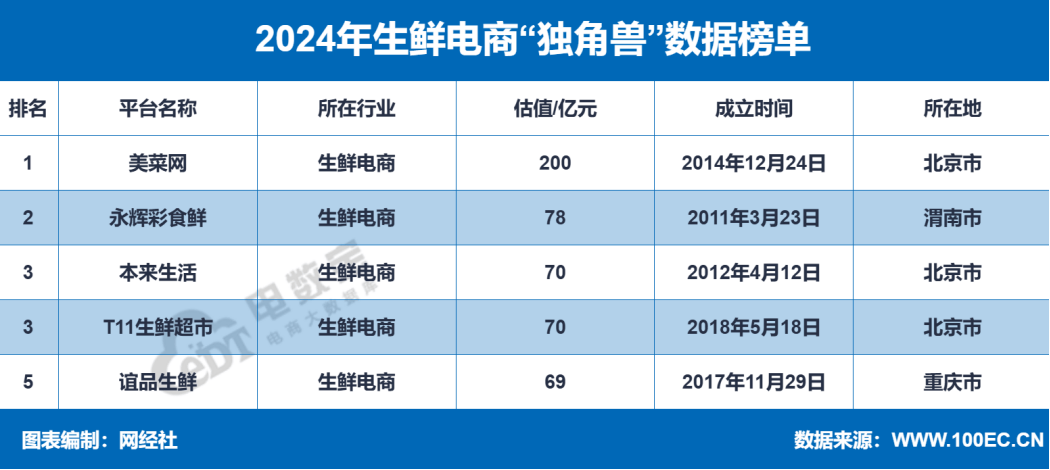 从数量取金额上看,2024年生鲜电商“千里马”榜单取客岁比拟并无较着变化。从成立时间来看,最长的成立16年,最短的为8年。